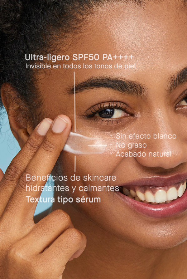 Protector solar facial de textura ultra liviana e invisible que brinda alta protección contra los rayos UVA y UVB mientras hidrata, calma y protege la piel de los agresores ambientales. Su fórmula de rápida absorción se integra perfectamente sin dejar residuo blanco ni sensación pegajosa, ideal para el uso diario en todo tipo y tono de piel.