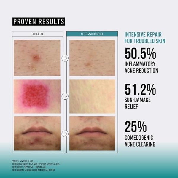 - Fórmula sin fragancia, no comedogénica probada, adecuada para pieles propensas al acné.