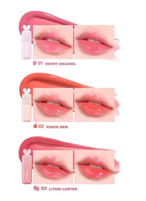 Brillo claro y gelatinoso con una textura acuosa que se siente liviano en los labios.